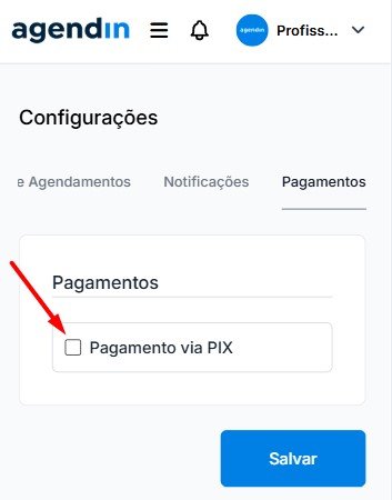 2. Ative a opção "Pagamento via PIX"